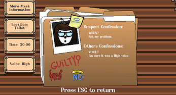 A murder mystery, several masked individuals, many masked intents, one dead body. Find the murderer with as few casualties as possible.